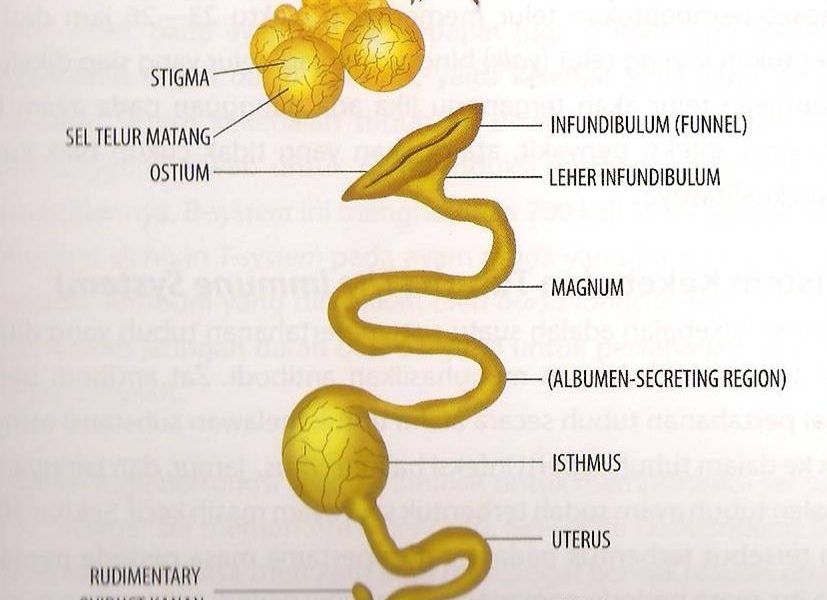 Organ reproduksi betina pada unggas punya ciri khas yang beda sama mamalia. Kalau mamalia biasanya punya dua ovarium yang aktif, unggas cuma punya satu ovarium bagian kiri yang benar-benar berkembang dan berfungsi. Ovarium kanan berhenti berkembang sejak dalam embrio, atau istilahnya jadi rudimenter. Hal ini dianggap sebagai bentuk adaptasi supaya tubuh unggas lebih ringan. Meski cuma satu yang aktif, proses reproduksi tetap berjalan normal, termasuk pembuahan yang terjadi di bagian infundibulum oviduk.