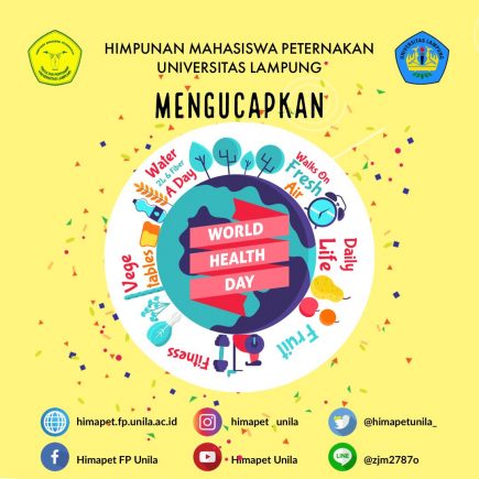 [ WORLD HEALTH DAY ] Himpunan mahasiswa peternakan mengucapkan happy WORLD HEALTH DAY. Cepat membaik dan lekas pulih Indonesia. Terima kasih! ✨ ———- Bidang Informasi dan Komunikasi HIMAPET Instagram : @himapet_unila YouTube : Himapet unila Twitter : Himapet Unila_ Fb : Himapet FP Unila #InfoKita #HimapetFP #Lampung #2020